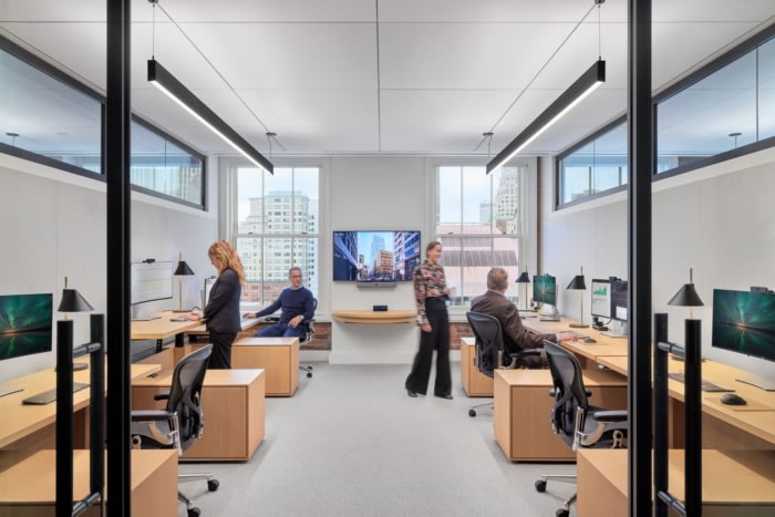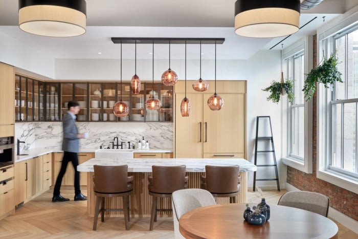 Стеклянные перегородки и преимущественно открытая планировка рабочего пространства способствуют укреплению связей между сотрудниками. Компания решила отказаться от индивидуальных офисов. Командные комнаты теперь обеспечивают баланс между совместной работой и конфиденциальностью. Оздоровительные комнаты, персональные шкафчики и кафе улучшают условия труда сотрудников.