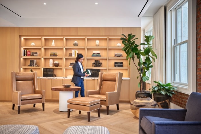Тесно сотрудничая с клиентом, компания Huntsman создала уникальную среду, которая излучает тепло и комфорт и способствует достижению целей. Каждая зона тщательно спроектирована для выполнения конкретной функции. Отсутствие традиционной зоны приема не нарушает уютную гостеприимную атмосферу, созданную баром Speakeasy.