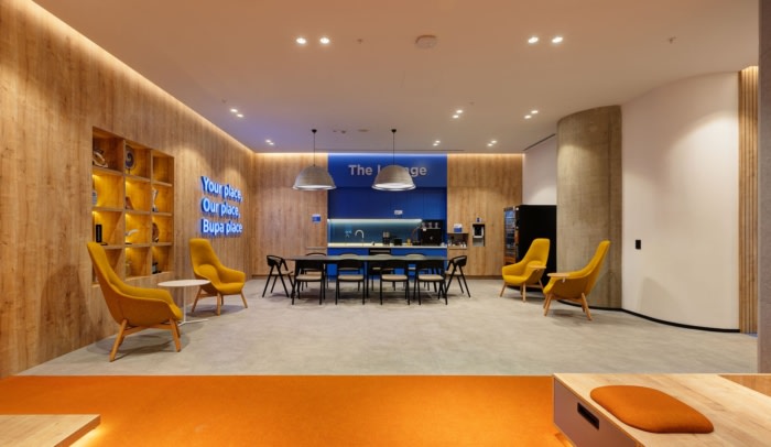 В дизайне был использован яркий и динамичный подход, отражающий фирменный стиль Bupa Acıbadem. Каждая деталь, начиная от выбора напольных покрытий до цветовой гаммы стен, была тщательно подобрана для создания теплой и уютной атмосферы в офисе.