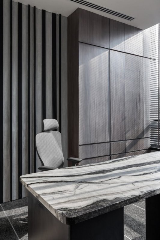 Дизайнеры разработали офис, сочетающий роскошь и элегантность, придерживаясь при этом утонченного минимализма. Дизайнерская концепция пронизывает все помещения, каждое из которых обладает уникальной функциональностью и характером. Объединённые в палитре серых оттенков, они плавно переходят друг в друга, как музыкальные аккорды, что дало проекту название «Симфония серого». Этот проект выходит за рамки традиционных подходов, гармонично объединяя функциональность, изящество и роскошь.