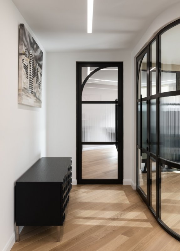 Компания Oktra разработала уникальное офисное пространство для Bear Capital в Ричмонде. Bear Capital обосновалась в новом офисе в Ричмонде, стремясь создать пространство, идеально соответствующее их нуждам. Их целью было создать высококачественное рабочее место, где сотрудники и деловые партнеры могли бы работать и общаться в элегантной и красивой обстановке. Компания Oktra применила весь свой опыт, чтобы удовлетворить уникальные требования Bear Capital. Здание с уникальной угловатой структурой потребовало особого архитектурного подхода. Oktra планировала использовать угловые формы мебели, чтобы сбалансировать острые углы. Для сохранения естественного света были установлены стеклянные перегородки с рифлеными деталями для дополнительной конфиденциальности. Они помогают сохранить легкость и воздушность в помещении. В зоне отдыха для зонирования использовали контрастное напольное покрытие вместо перегородок. Эта зона выделяется характерным рисунком пола и черной изогнутой отделкой. Освещение также тщательно продумано. Каждый осветительный прибор выбран специально для обозначения и освещения различных зон офиса. Дизайн освещения не только функционален, но и является продолжением архитектурного духа, отражая кривизну и линейные элементы в пространстве. Чтобы подчеркнуть высочайшее качество в компании, были внедрены различные индивидуальные детали. Использование рифленого стекла, текстурированной отделки фартука, кожаных дверных ручек и необычных дизайнерских решений создает минималистичное, но роскошное ощущение. Функциональность оставалась в приоритете благодаря индивидуальным системам хранения, изготовленным по точным спецификациям Bear Capital. Преобразование офиса Bear Capital — это не просто эстетическое обновление, а стратегическое улучшение операционной среды. Oktra адаптировала планировку к конкретным потребностям компании, создав рабочее пространство, которое оптимизирует функциональность и отражает идентичность компании. Оно культивирует современную, светлую и гостеприимную атмосферу, гармонично сочетая профессиональный и жилой дизайн. Такой подход гарантирует, что офис не только поддерживает повседневную деятельность Bear Capital, но и соответствует их бизнес-целям, обеспечивая основу для роста, инноваций и сотрудничества. Вам нравится интерьер этого офиса?
