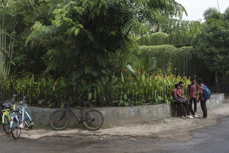 Еще одной проблемой были пыль и шум от столярной мастерской, расположенной на востоке предполагаемого участка. Для защиты от этих факторов была построена пятиметровая стена из кирпича с проволочной нарезкой, которая снизила уровень шума и пылевого загрязнения. Пруд с рыбами и помог создать необходимый микроклимат. Вьющиеся растения, образующие зеленую завесу, создают линейный сад на крыше, способствуя поддержанию теплового комфорта.