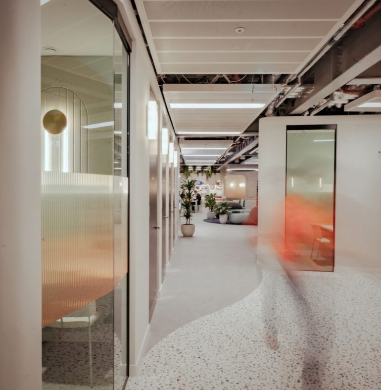 Акустические решения помогают сохранить баланс между оживлённой атмосферой и возможностью сосредоточенной работы.