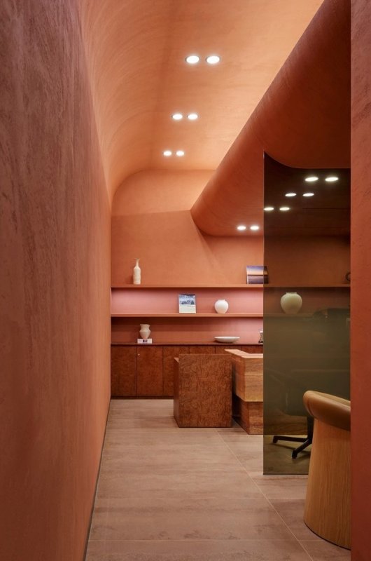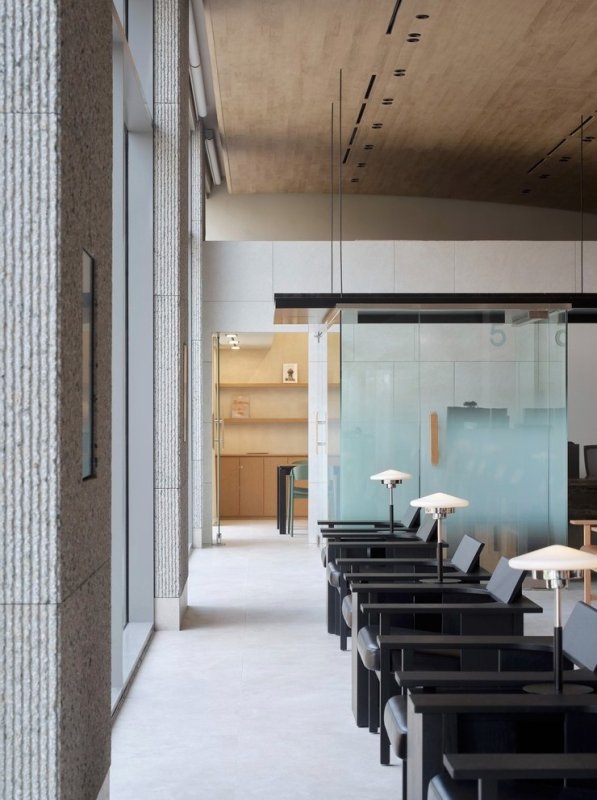 Проект Hana Bank, разработанный студией Indiesalon, представляет собой переосмысленный формат банковского интерьера, ориентированный на комфорт, открытость и удобство клиентов. Пространство уходит от традиционного строгого образа банков и предлагает более дружелюбную и современную среду. Интерьер с панорамными окнами Hana Bank Интерьер создан как место, где финансовые услуги сочетаются с комфортным пользовательским опытом. Открытая планировка и доступность Основой концепции стала открытая и прозрачная планировка, которая делает пространство понятным и доступным. Отсутствие жёстких барьеров снижает ощущение формальности и способствует более комфортному взаимодействию между клиентами и сотрудниками. Интерьер с полками Hana Bank Зоны обслуживания организованы так, чтобы обеспечить приватность при сохранении общей открытости. Архитектура и мягкое зонирование Пространство разделено на функциональные зоны с помощью мебели, освещения и архитектурных элементов. Такое решение позволяет сохранить целостность интерьера и при этом обеспечить удобство использования. Кабины рабочие места Hana Bank Зонирование поддерживает различные сценарии — от быстрых операций до более длительных консультаций. Материалы и атмосфера доверия В интерьере используются материалы с тёплой и спокойной фактурой, которые создают ощущение надёжности и стабильности. Цветовая палитра выдержана в нейтральных оттенках, способствующих расслаблению и концентрации. Коридор с арочным потолком Hana Bank Материалы усиливают ощущение профессионализма и комфорта. Свет и визуальный комфорт Освещение в Hana Bank играет важную роль в формировании атмосферы. Мягкий, равномерный свет создаёт комфортную обстановку и снижает напряжение. Световые акценты помогают выделить ключевые зоны и улучшить навигацию в пространстве. Крупный план мебели Hana Bank Свет поддерживает ощущение открытости и прозрачности. Ориентация на клиента Проект ориентирован на улучшение клиентского опыта. Пространство интуитивно понятно, удобно и располагает к спокойному взаимодействию. Интерьер делает посещение банка менее формальным и более комфортным. Лобби зона ожидания Hana Bank Итог Hana Bank — это пример современного банковского пространства, где дизайн помогает сформировать доверие и комфорт. Проект демонстрирует, как архитектура и интерьер могут трансформировать традиционный формат, делая его более открытым, удобным и ориентированным на человека. Общий зал с круговым световым элементом Hana Bank Ряд рабочих мест Hana Bank Основной зал с рабочими местами Hana Bank Зона ожидания с колоннами Hana Bank Зона VIP клиентов Hana Bank Входная зона с потолочным овалом Hana Bank Источник: Architects: Indiesalon Lead Architect: Seokjoon Jang Design Team: Yongsuk Kim, Sunghyun Hong Photographs: Donggyu Kim Via