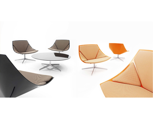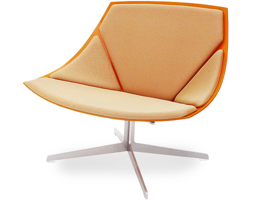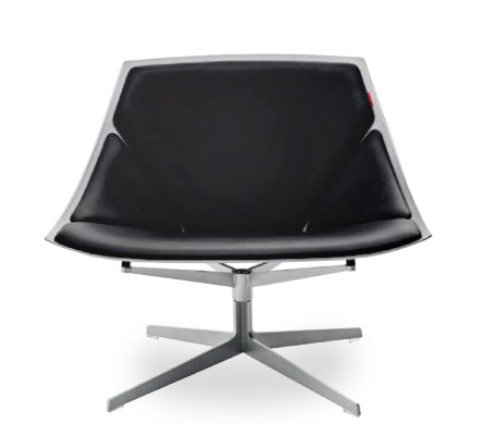 Стул для гостиной в космическом стиле Каркас стула содержит синтетический волокнит, матово лакированный в серебряный цвет или с блестящей лакировкой черного или белого цвета. Передняя часть разделена на четыре секции, чтобы обеспечить наилучшее положение для тела и комфортный отдых, а также поддержку спины и рук. Секции обтянуты тканью или кожей. Стальное основание доступно в двух вариантах - цельное или крутящееся