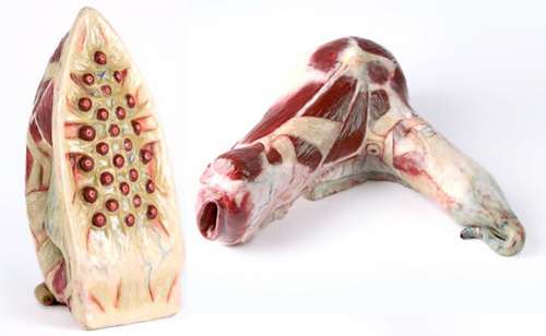 предметы быта от Simone Racheli Художник и дизайнер Симон Рэчели (Simone Racheli) создает довольно любопытные проекты. Предметы быта в его обработке выглядят похожими на…мясо. Да, вы прочитали абсолютно верно, именно на мясо. Взгляните, в подобном стиле он создал туалет, фен, стул и утюг.
