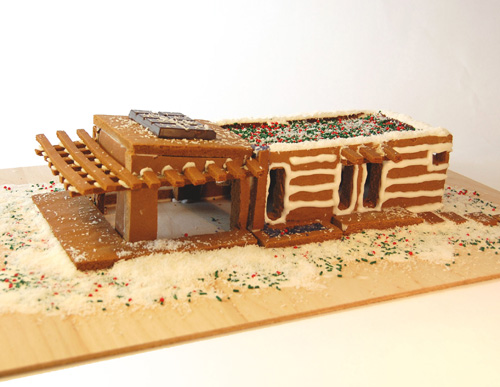 пряничный домик от Michelle Kauffman Единственная вещь, которая может быть лучше красиво разработанного, сборного дома? Конечно, съедобный сборный дом! Одна из лучших и наших любимых архитекторов, Мишель Кауфман (Michelle Kauffman) в честь праздников изготовила сладкую версию своего проекта дома «mkLotus» полностью из имбирного пряника и назвала его GingerLotus.