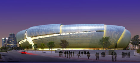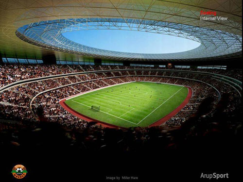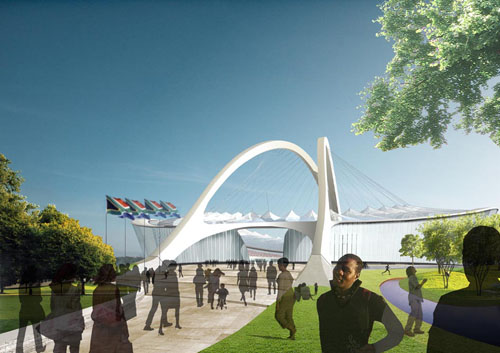Еще один стадион из ЮАР. Такой бум стадионостроительства в Южноафриканской республике объясняется чемпионатом мира по футболу, который пройдет в 2010-м году, на него правительство ЮАР не жалеет никаких денег. Этот стадион будет располагаться в Дурбане, городе золотых пляжей и Индийского океана.