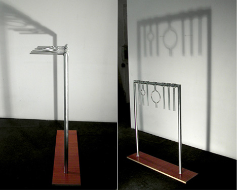 стол от Diana Halbeisen Ее изобретение – это ряд металлических прутьев, закругленных в некоторых местах, чтобы держать столовые приборы, стаканы, тарелки с едой. Возможно, он покажется вам неудобным и не слишком функциональным, но, задумайтесь, сколько места он смог бы вам сэкономить! Ведь когда вы не пользуетесь этим столом, его можно сложить и поставить у стенки. Хотя и в разложенном состоянии он очень компактен.
