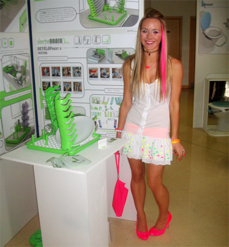 подставка для посуды от Sarah Brayshaw Вы можете считать мисс Брейшоу (Miss Brayshaw) свихнувшейся, но, поверьте, ее проект Verte Drain повергнет вас в еще больший шок, чем ее экстравагантная внешность. Эта система блоков позволяет иметь под рукой именно те предметы, которые вам необходимы. подставка для посуды от Sarah Brayshaw Это и держатель для тарелок, и подставка для бокалов, и сушилка столовых приборов одновременно. И все это в единой конструкции, три в одном! Она компактна, отлично подходит как раз для российских маленьких кухонь и, к тому же, выглядит очень ярко и необычно. подставка для посуды от Sarah Brayshaw А теперь взгляните на творца этого проекта - дизайнер Сара Брейшоу (Sarah Brayshaw) подставка для посуды от Sarah Brayshaw