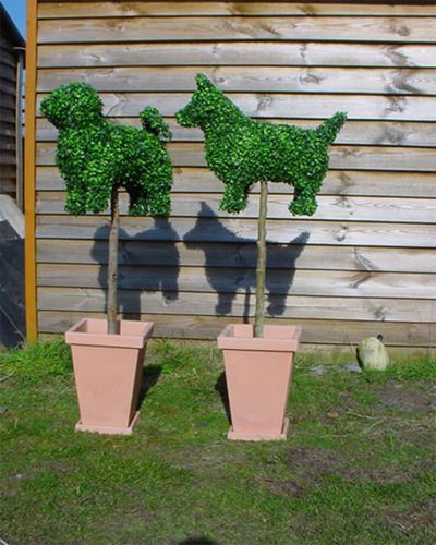 Зеленые скульптуры топиари. А знаете ли вы, что скрывается за красивым словом «топиари»? Топиари — это деревья и кустарники, которые постоянно стригут для придания им определенной формы. За основу древние садоводы брали пряморастущие вечнозеленые растения с большим количеством мелких листиков или иголок. Зеленые скульптуры топиари. Путем тщательного ухода из них формировали большие шары, колонны, беседки и т. д. Встретить такие зеленые скульптуры можно было только в усадьбах знати и высокопоставленных чиновников, ну и, само собой, во дворцах древних правителей. Зеленые скульптуры топиари. Есть мнение, что родоначальником этого удивительного приема был присматривающий за угодьями Цезаря садовник по имени Калвена. Правителю так понравилось, как последний фигурно подрезал дерево, что он потребовал, чтобы его владения украшали только такие красивые скульптуры. Зеленые скульптуры топиари. Позднее этот же садовник вырезал из большого куста бюст Цезаря, за что был щедро одарен. В римской империи мастер, знающий искусство топиари, оценивался в стоимость нескольких десятков рабов, но сам он таковым не являлся, а был скорее приближенным и передавал свои знания только лучшим ученикам. С экспансией распространилась и модельная стрижка. Каждая провинция привносила что-то новое, и вскоре появились даже школы «фигурного» искусства. Зеленые скульптуры топиари. Одновременно художественная стрижка растений развивалась и на Востоке. Правда, там она из элемента ландшафтного дизайна превратилась в постулат философии и стала называться «бонсаи». Хозяин не мог принимать гостей в саду, если там не поработал архитектор. Из растений вырезались беседки, коридоры и даже статуи Будды. Но все же это действо отличалось от топиарного искусства других стран. Зеленые скульптуры топиари. В России же подобное мастерство распространилось при Петре I, который был наслышан про диковинные кусты и деревья неприродных форм, растущих в садах правителей Европы. Он приказал садоводам своего двора немедленно изучить все тонкости этого дела, зачем и отправил их заграницу. По возвращении на родину они тут же принялись за работу в новом городе — Санкт-Петербурге. Но заграничные кусты и деревья плохо переносили российские морозы, и поэтому им пришлось искать отечественные аналоги. Ими стали рябина, ель, липа, можжевельник, черемуха. Зеленые скульптуры топиари. В нашем XXI веке уже нет каких-то определенных стилей в ландшафтном дизайне. Почти во всех садах происходит смешение сразу нескольких вариантов, что приводит к небольшому творческому хаосу. Дизайнеры стремятся придать участку естественность, но с видимыми элементами творения рук садовника. Растения, обработанные в технике топиари, сразу приковывают к себе глаз, и поэтому их почти всегда располагают в середине какой-либо группы посадок, около дома или в центральных зонах участка. Зеленые скульптуры топиари. Следует отметить, что эти композиции хорошо смотрятся только на больших пространствах. Хотя и владельцы шести соток размещают у себя мини-скульптурку, выполненную вполне фигурно. Так что обладатель любой площади может почувствовать себя королем и получить свой собственный Версаль. Рассказывает портал Лог-ин.