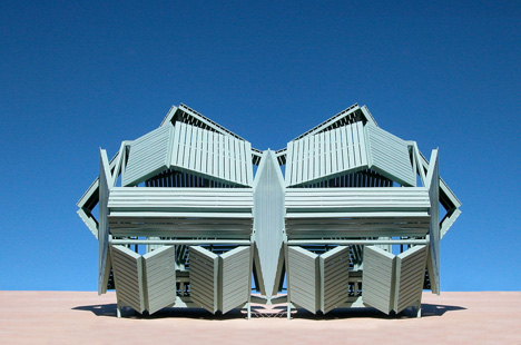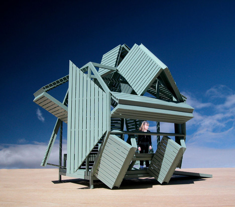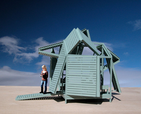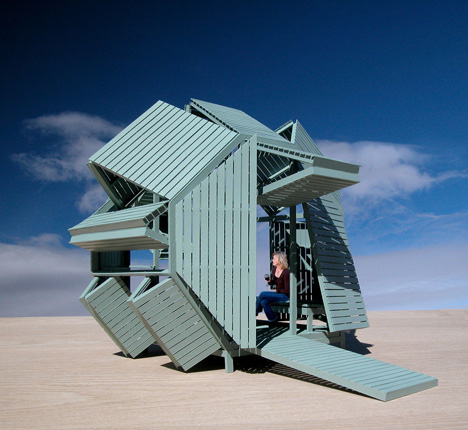 дом от Michael Jantzen Независимо от того, кем и где вы работаете и чем занимаетесь, потребность в личном, тихом и укромном месте, где вас никто не потревожит, очень важна. Уйти от шума города, побыть в одиночестве – вот что порой нужно человеку в наше время. В связи с этим, дизайнер и архитектор Майкл Джантцен (Michael Jantzen) создал специальное место, где можно окунуться в полную тишину, спокойствие и неподвижность. дом от Michael Jantzen Его проект был разработан как раз для этой цели, ради того, о чем мечтают многие люди. Итак, M-velope – место, где можно поразмышлять. Это не простой дом, его можно преобразовывать в различные формы, перемещать панели, открывая помещение или же делая его закрытым. Общая площадь пола составляет 8 футов, что примерно равняется 25м?, а высота может достигать целых 12 футов, примерно 39м, если собрать все панели вертикально. дом от Michael Jantzen Внутри здания находятся скамьи со спинками, каждая из которых способна вмещать по восемь человек. Этот дом очень легко и удобно транспортировать, а если вы желаете увеличить внутренне пространство, нужно лишь соединить блоки в определенном порядке для получения дополнительного места. дом от Michael Jantzen Архитектор: Michael Jantzen дом от Michael Jantzen
