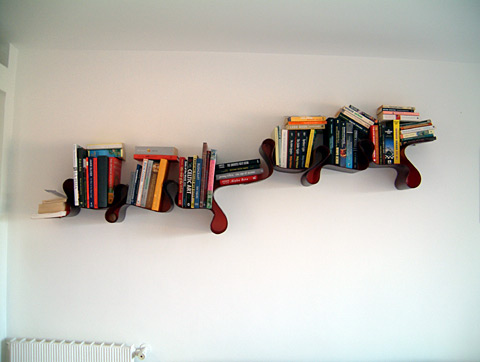 Полка для книг В самом деле, кажется, что хранить книги на полке со столь причудливыми формами просто невозможно, но в действительности она весьма удобна в использовании и при этом имеет очень необычный вид. Причем, благодаря необычному внешнему виду, вы можете повесить полку любой стороной, или разместить две и более полок рядом: конструкция позволяет скомбинировать их по всей стене, составив уникальный книжный шкаф, которого больше ни у кого не будет.