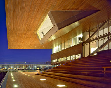 Здание музея современного искусства в Бостоне Особый шарм этому зданию придает футуристическая аудитория, выполненная в белом стиле, наклонное окно которой, выходит прямиком на воду. В проекте: Хай Лайн(The High Line), Нью-Йорк