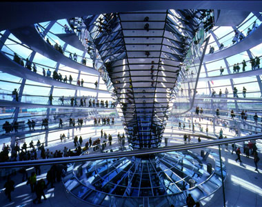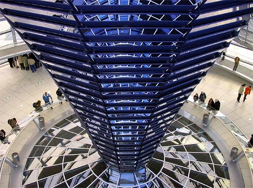 Здание Рейхстага в Берлине Ввиду эмоциональной значимости здания задачей Фостера было открыть Рейхстаг сердцам и сознанию граждан. Он спроектировал прозрачный купол, сквозь который открывается вид на панораму Берлина всем посетителям Рейхстага. Точно также они могут видеть и парламентские комнаты, которые отражаются в зеркальном конусе в центре здания. Этот конус также служит проводником естественного света снаружи здания в его внутреннее помещение. Здание позволило соединить город и правительство, также благодаря своему внушительному внешнему виду Рейхстаг имел большой успех у туристов и стал одной из главных достопримечательностей Берлина.