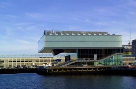 Здание музея современного искусства в Бостоне В 2006-м году базирующаяся в Нью-Йорке компания Diller Scofidio + Renfro, составленная из супружеской пары Элизабет Дилер и Риккардо Скофидио плюс Чарльз Ренфро, сняли покрывало со здания Бостонского Института Современного Искусства. Это здание потрясло город, ранее не замеченный в любви к современной архитектуре.