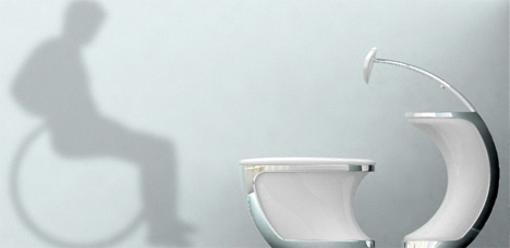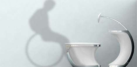 туалет от Changduk Kim & Youngki Hong Универсальный туалет – это туалет, идеально подходящий лицам и того, и другого пола, а также инвалидам. Даже современные туалеты для инвалидов требуют маневренности, особенно, если он на инвалидном кресле. Теперь же эту проблему обещают решить: с помощью этого Универсального туалета человеку на инвалидном кресле не нужно крутиться или поворачивать, ведь можно просто подъехать вперед непосредственно к туалету.
