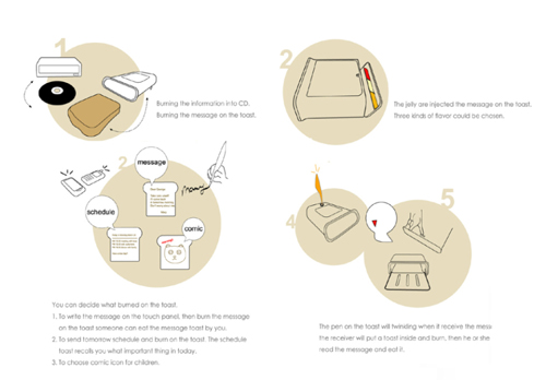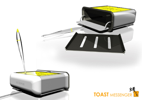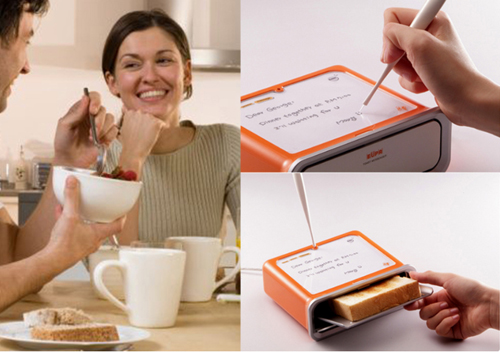 тостер от Sasha Tseng Таким образом, вы можете есть и читать оставленные послания одновременно. Теперь уже остальные члены вашей семьи могут не устраивать переполох на кухне, а просто оставить вам парочку «съедобных сообщений».