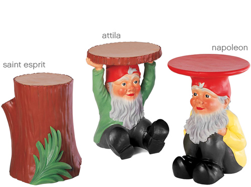 Сказочный стол-табурет стилизованный под гномов Впрочем, как их использовать - это только ваше дело. Можете поставить их на кухню в качестве табуретов, а можете в спальню - маленькими столиками, на которых уместится масса мелочей. При этом, благодаря своему необычному смешному виду, они с легкостью вольются в любой дизайн и вызовут улыбку у любого гостя.