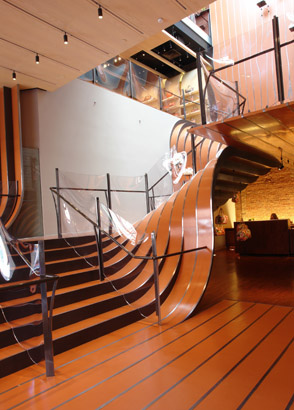 Может быть, массивная центральная спираль служит опорой? Как бы то ни было, лестница действительно впечатляет.