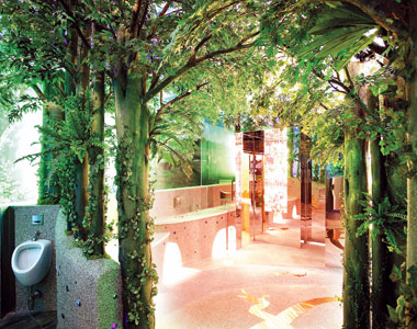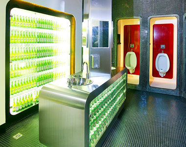 Главный минус многих хороших ночей – это огромные очереди в туалет. В это время ваши друзья покупают напитки, травят лучшие анекдоты и заводят новые знакомства. А если очередь действительно длинная, вас ждет самое страшное – вы протрезвеете. Видимо, дизайнеры этого места проходили через все это, поэтому они оформили мужскую уборную в стиле «бар-в-туалете». Стены выложены зеленой плиткой, которые контрастируют с красными писсуарами. Но самое главное в туалете – это холодильники, заполненные холодными зелеными бутылками пива Хайнекен. Chung Yo – это шестнадцатиэтажный торговый центр, в котором можно купить все от одежды до гаджетов. В нем вы найдете еще четырнадцать тематических комнат отдыха, одна веселей другой. Как насчет баскетбольного туалета с писсуарами в виде колец (не лучшее место, чтобы практиковаться в своей меткости, мы полагаем). Также есть туалет выполненный в стиле «Кока-Кола», с кабинками в виде гигантских банок и уборная-джунгли, в которой вам придется пробиваться сквозь лианы, чтобы ответить на зов природы.