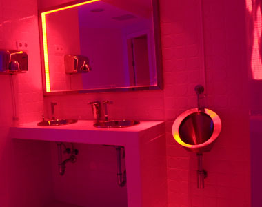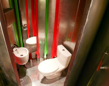 Создатель клуба Reinabruja в Мадриде хотел, чтобы посетителям никогда не пришлось входить в одну и ту же обстановку. Поэтому Tom?s Al?a, один из известнейших клубных дизайнеров Мадрида, создал систему освещения, контролируемую компьютером. Цветовая гамма состоит из комбинированных потоков пульсирующего красного, голубого, фиолетового, оранжевого и зеленого света, перемежаемых яркими вспышками. Если вы хотели успокоиться и подумать о вечном в туалете, то вы явно выбрали не то место.