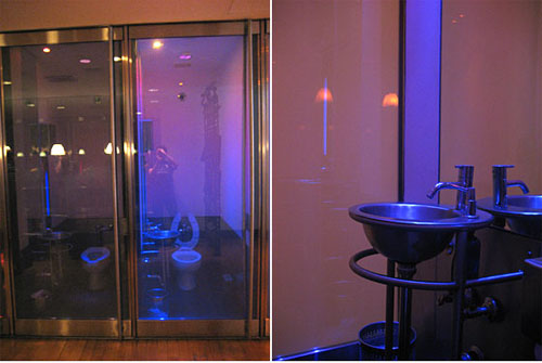 Было замечено, что мужчины по-разному реагируют на мужской туалет на втором этаже в этом высококлассном отеле: одни выходят гордые и довольные собой, другие же покидают его в дурном настроении. Дизайнеры Бретт Тайлор(Brett Taylor), Марк Перриам(Mark Perriam) и Кэм Марш(Cam Marsh) установили полноразмерные фотографии женщин, внимательно следящих за процессом из-за писсуаров – с биноклями, очками, фотоаппаратами и даже с рулетками в руках. Бедные особи мужского пола, которые прошли через это испытание, могут перенести еще один шок: все модели на фотографиях – реальные женщины, так что посетители этого туалета легко могут столкнуться с ними на улице. То еще дежа вю.
