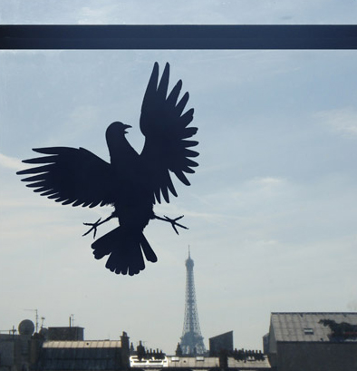 На первых двух изображениях - работы дизайнерского дуэта Paristic Это двое друзей, живущих в Париже и влюбленных в этот город, отсюда и название студии. Наклейка на оконное стекло под названием "Последний полет" - забавная, на мой взгляд, идея, однако в коллекции множество утонченных рисунков в стиле ар-нуво, интересные перспективы, и даже очертания парижских крыш, создающие неповторимую атмосферу романтической столицы в любом