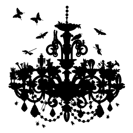 Если внимательно всмотреться в следующую наклейку-люстру, можно увидеть множество весьма интересных деталей и силуэтов. Начинает работать фантазия и кажется, будто вот-вот они оживут и в доме станут твориться невообразимые вещи. Наверное, если "повесить" такую люстру у себя в спальне, приснятся самые красочные сны!