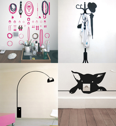 Вы уже, возможно, видели много разных виниловых наклеек на стены, но хорошего, как говорится, никогда не бывает слишком много. Вот несколько примеров того, как можно красиво и со вкусом сэкономить не только на обоях и краске, но и на мебели. Особенно хорошо подойдет детям, студентам и тем, кто любит часто менять интерьер. На первых двух изображениях - работы дизайнерского дуэта Paristic Это двое друзей, живущих в Париже и влюбленных в этот город, отсюда и название студии. Наклейка на оконное стекло под названием "Последний полет" - забавная, на мой взгляд, идея, однако в коллекции множество утонченных рисунков в стиле ар-нуво, интересные перспективы, и даже очертания парижских крыш, создающие неповторимую атмосферу романтической столицы в любом Французскую тему продолжают наклейки из интернет-бутика "Les Invasions Eph?m?res". Если внимательно всмотреться в следующую наклейку-люстру, можно увидеть множество весьма интересных деталей и силуэтов. Начинает работать фантазия и кажется, будто вот-вот они оживут и в доме станут твориться невообразимые вещи. Наверное, если "повесить" такую люстру у себя в спальне, приснятся самые красочные сны! Напоследок - сайт, где вы найдете большое количество наклеек разной тематики, от разноцветных и абстрактных до таких игривых, как эта злобно улыбающаяся свиная мордаха. Это, конечно же, далеко не исчерпывающий обзор виниловых наклеек. Их становится больше с каждым днем, и это, по-моему, здорово!