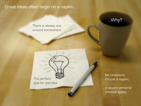 салфетки от Avery Holleman В наше время было столько всего изобретено, что обо всем и не расскажешь. Однако, вот эти салфетки выходят на первый план. Согласитесь, обычно все идеи приходят в самый неожиданный момент. И где в их записываете? Да где попало? И порой даже на салфетках.