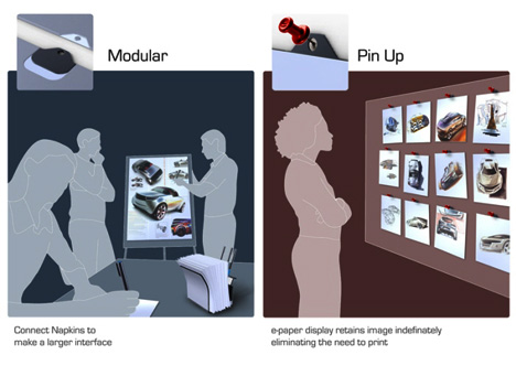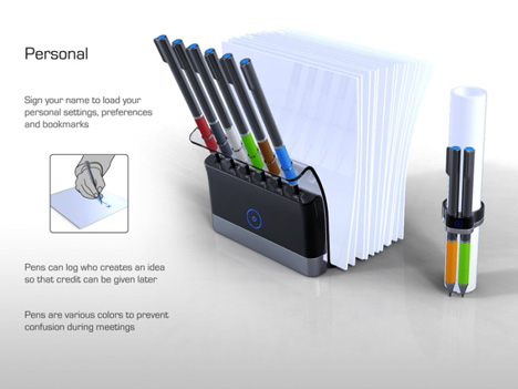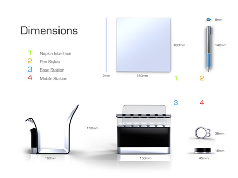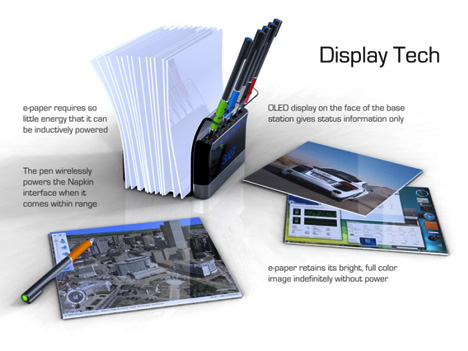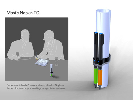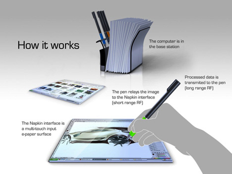 салфетки от Avery Holleman Они первые в своем роде используют RF-технологию и созданы для работы в группе, в коллективе. Каждая ручка передает ваши каракули, которые вы выводите на салфетке, на «базовую станцию», то есть…на держатель этих фломастеров! Который является скрытым компьютером.