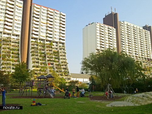 Жилой комплекс в Вене Добро пожаловать в Alt-erlaa, общественный жилой комплекс в Вене. Жилой комплекс в Вене Не знаю, что за люди имеют счастье жить там, но им определенно повезло. Райское местечко. Построили его в 1973-1985 годах, спонсировало проект строительство. Комплекс содержит около 10000 апартаментов для жильцов с невысоким уровнем дохода. Жить им приходится в очень «зеленой» среде: на фото видно, что комплекс максимально засажен разнообразной растительностью. Жилой комплекс в Вене Опять же, на снимках видно, что здания имеют открытые бассейны на крышах, и ими пользуются регулярно 70% жильцов. Еще бы, я бы тоже не отказалась просто полюбоваться панорамой Вены с крыши высотки, не говоря уж о том, чтобы там искупаться. Жилой комплекс в Вене На этом прелести комплекса не заканчиваются. Жителям доступны также закрытые бассейны, комнаты для фитнеса, солярии, сауны, теннисные корты, школы, два медцентра, церковь, супермаркеты, рестораны, подземная парковка на 3400 мест и… станция метро! Жилой комплекс в Вене У комплекса даже есть собственный ТВ-канал. Ей-богу, ребятам осталось придумать национальную символику и избрать президента, чтобы стать отдельным государством. Жилой комплекс в Вене Австрийцы уверены, что для долгого успеха любого архитектурного проекта самое главное – прочная связь с обществом. Глядя на фотографии, не согласиться сложно. Harry Gl?ck. – вот этот святой человек, автор проекта. Право, побольше бы таких авторов, а заодно согласных спонсировать подобное государств.