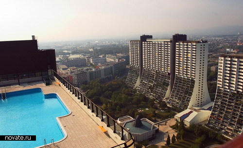 Жилой комплекс в Вене Опять же, на снимках видно, что здания имеют открытые бассейны на крышах, и ими пользуются регулярно 70% жильцов. Еще бы, я бы тоже не отказалась просто полюбоваться панорамой Вены с крыши высотки, не говоря уж о том, чтобы там искупаться.