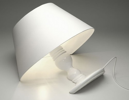 Лампа от компании Fluke Представляете, в какой восторг придут гости от вида вашей спальни в совершенно банальном, классическом дизайне (обои в цветочек, двухспальная кровать, одинаковые тумбочки с двух сторон у изголовья), если на тумбочках вместо обычных будут лежать две такие лампы? Между прочим, ножка сделана из лакированного дерева, а абажур – из хлопка. И к слову, вообще-то лампа выполнена в белом цвете. Но если в вас самих есть дизайнерские начала, кто помешает раскрасить ее так, как заблагорассудится?