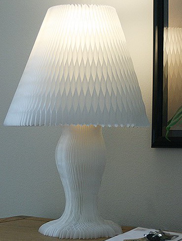 Лампа от компании Fluke Лот третий дает новую жизнь японским бумажным фонарикам. Если заказать такую, вы получите ее в плоском виде – как будто ребенок вырезал из плотной бумаги силуэт половинки лампы; в голову не придет, что она работает. Но если освободить ее от упаковки, она раскладывается в симпатичную настольную лампу классической формы. Остается закрепить результат при помощи нескольких скрепок и протянуть провод (который почему-то в комплект не входит) в центральное отверстие.
