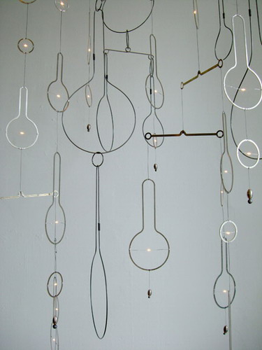 Световая инсталляция Выглядит великолепно, не так ли? А ведь это не абстракция руки какого-нибудь модного художника. Такие невесомые формы вполне могут украсить ваш собственный дом! Хрупкие силуэты и крошечные огоньки – это не что иное как световая инсталляция. Orchadia (так она называется) одновременно аккуратная и очень красивая. Изначально она была только комбинацией большого размера, но позже сделали и вариант поменьше, так что необязательно выделять для нее целую стену. Крохотные огни теплого медового цвета (как на старой новогодней елке!) соединены вместе с электронной композицией из элегантных силуэтов, напоминающих капли, которые медленно крутятся вокруг своей оси. Световая инсталляция Вместо привычных LED огоньки в этой системе – обычные лампы накаливания, работают они столько же, зато дают более мягкий, приятный и комфортный для глаз свет. Невероятно тонкая проволока, созданию которой поспособствовал знаменитый проволочный скульптор Роджер Стивенс (Roger Stevens), соединяет все элементы воедино, создавая и анимацию, которая завораживает. Все вместе смотрится невероятно красиво и действует расслабляюще. Световая инсталляция
