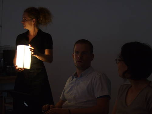 Лампа «Просвещение» сделана из белого оргстекла, 24 сантиметра в высоту, 17 в ширину и 8 в толщину. Внутри нее находится энергосберегающая 9-ваттная лампочка. А 10% прибыли от продажи пойдет на благотворительность.