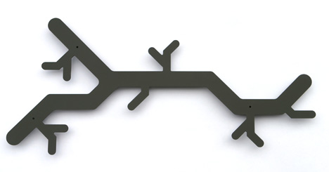 вешалки от Alissia Melka-Teichroew and Jan Habraken Эти стальные крюки с порошковым покрытием являются не просто красивым скульптурным украшением на стену, но и отличной вешалкой для ваших шапок, шарфов, перчаток и прочих разнообразных аксессуаров. «Крючковатое дерево» состоит из блоков, которые могут быть расположены горизонтально, вертикально и по диагонали. Их очень легко установить, и возможности размещения действительно безграничны! Каждый крючок имеет размер 22 дюйма, в наличии есть белый, черный и матовый серебряный цвета. Прочие расцветки будут позже, как обещают дизайнеры.