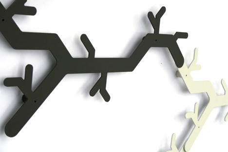 вешалки от Alissia Melka-Teichroew and Jan Habraken Эти стальные крюки с порошковым покрытием являются не просто красивым скульптурным украшением на стену, но и отличной вешалкой для ваших шапок, шарфов, перчаток и прочих разнообразных аксессуаров. «Крючковатое дерево» состоит из блоков, которые могут быть расположены горизонтально, вертикально и по диагонали. Их очень легко установить, и возможности размещения действительно безграничны! Каждый крючок имеет размер 22 дюйма, в наличии есть белый, черный и матовый серебряный цвета. Прочие расцветки будут позже, как обещают дизайнеры. вешалки от Alissia Melka-Teichroew and Jan Habraken Это симпатичное деревце будет первым проектом дуэта дизайнеров из Голландии – Алиссии Мелка-Тейкрю и Яна Хейбрекена (Alissia Melka-Teichroew and Jan Habraken). Помимо того, что они сотрудники по этой творческой работе, так еще и являются супружеской парой. Они оба имеют собственные успешные дизайнерские студии: Алиссия управляет компанией BY:AMT, а Ян – сотрудник фирмы WATdesign. Их работы были показаны отдельно на показе дизайнерских новинок «Salone del Mobile» в Милане и Международной ярмарке современной мебели. Также их работы можно найти в магазинах всего мира, что несомненно является гарантией качества. вешалки от Alissia Melka-Teichroew and Jan Habraken Ян и Алиссия рассматривали их совместное профессиональное сотрудничество, как способ отпраздновать брак, который был в 2006 году, и последующее решение переехать в Бруклин, Нью-Йорк. И производство проекта этого дерева весьма символично. Все-таки брак – это фактически соединение двух генеалогических деревьев. И конечно, не стоит забывать, что деревья символизируют стабильность, рост и пополнение _