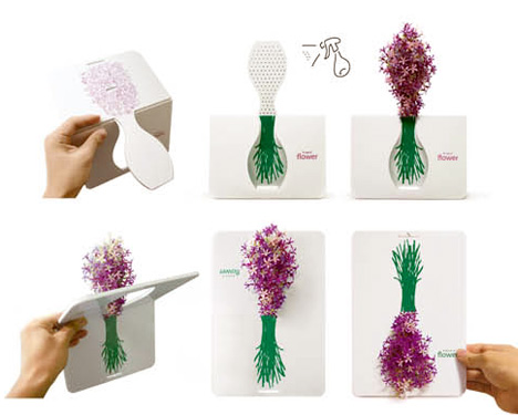 искусственный цветок от Ki-Seung Lee Открывайте упаковку с мнимым цветком, распыляйте воду на гидропонические цветки (прим. гидропоника – это способ выращивания растений без почвы) и смотрите, что произойдет. Цветок распускается, и у вас появляется вазочка, заполненная необыкновенной красоты цветами. И никаких хлопот у вас не будет с этим цветком, в отличие от настоящих растений. Обязательно обратите внимание, вполне разумная и симпатичная идея, которая привлечет не только женскую половину населения, но и мужскую. Ведь для вашей спутницы это может стать вполне хорошим подарком ко Дню святого Валентина, например, как знак того, что ваша любовь никогда не угаснет и не «завянет».