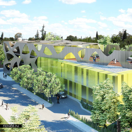 Проект торгового центра от Pascal Arquitectos Второй крупный проект мексиканского архитектора Паскаля Аркветектоса (Pascal Arquitectos) получился очень необычным и цепляющим. Это проект торгового центра в городе Педрегал, который был запущен прошлым летом. Проект торгового центра от Pascal Arquitectos Проект, который всецело поддерживает правительство Педрегала, был разработан, с целью оживить центр города, в котором не было построено ничего нового со времен «Cuidad Universitaria». Проект торгового центра от Pascal Arquitectos Вокруг торгового центра стоит множество зданий с огромными каменными заборами, и никто не знает что там происходит внутри. Разумеется, для привлечения туристов это не самый лучший вариант, поэтому правительство решило построить такой торговый центр, который позволил бы и привлечь туристов и помочь им потратить свои деньги. Проект торгового центра от Pascal Arquitectos Цель была достигнута с помощью необычного дизайна фасада здания, который состоит из двух частей – цинковой пластиной с большими нестандартными отверстиями и слоистого стеклянного каркаса неравномерного желтого цвета. Проект торгового центра от Pascal Arquitectos Внутри центр выглядит тоже очень интересно. Планируется, что там будут располагаться многочисленные торговые точки и кафе. Подземный паркинг, множество лифтов – все что нужно современному ТЦ. И, разумеется, полный комплекс энергосберегающих ресурсов – система контроля света, автоматические двери, системы кондиционирования воздуха и т.д. Проект торгового центра от Pascal Arquitectos В ТЦ будет два этажа, а на крыше планируется посадка сада. Проект торгового центра от Pascal Arquitectos Проект торгового центра от Pascal Arquitectos