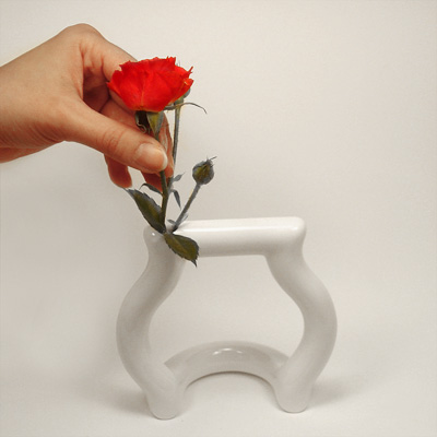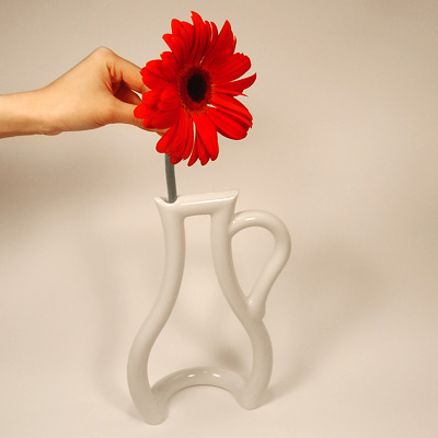 Ваза-контур Удел дизайнеров – ломать стереотипы. Громкие новаторства звучат сенсациями по всему миру, а всякие пустяковые стереотипчики – это в некотором смысле каждодневная рутина для дизайнера. Например, кто сказал, что невысокая ваза с широким горлом не годится для одного цветка? Ваза-контур Первый взгляд на вазы Outline поражает воображение. Куда делась ножка цветка? Может быть, это какой-то оптический обман с кривыми зеркалами? Ваза-контур Не сразу понимаешь, что на самом деле вазочка только выглядит, как толстенький кувшин. На самом деле это хрупкий фарфоровый контур, который и служит вазой, то есть емкостью для воды, куда надо ставить цветок. Ваза-контур Ножка цветка спрятана в стенке мнимого кувшина. Вазочка бывает в двух размерах; они замечательно смотрятся по отдельности и дополнят друг друга не хуже.