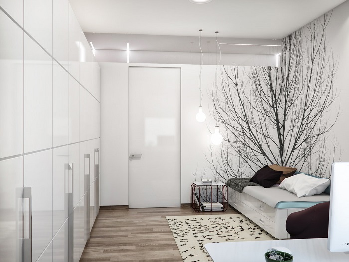 Комнате без окон не хватает естественного освещения, поэтому она выглядит темной и безликой. Исправить ситуацию поможет белый цвет. Он делает пространство визуально больше и просторнее. Кроме того, не стоит забывать, что этот цвет способен отражать лучи всего спектра и равномерно распределять их по комнате, что также играет нам на руку. Поэтому, когда начнете делать ремонт в комнате, обязательно покрасьте стены и потолок в белоснежный цвет. Чтобы помещение не выглядело скучным и стерильным, как в больнице, добавьте в интерьер яркий деталей. Это могут быть шторы, ковер, диванные подушки, картины на стенах и многое другое.
