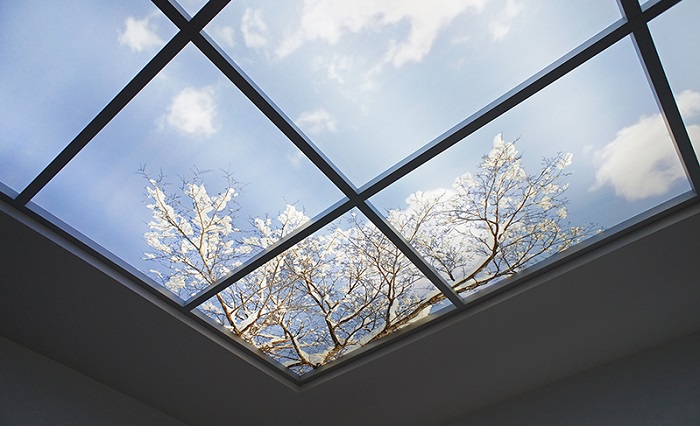 Недавно американские разработчики представили на суд публике технологию, которая имитирует большие окна и проемы на крыше. Если разместить такое «окно» на потолке, то вы сможете видеть проекцию неба, облаков, листьев деревьев и так далее. Однако иллюзию стеклянной крыши можно сделать далеко не во всех помещениях, это все сугубо индивидуально.