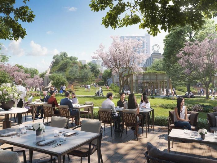 Зеленые зоны станут отличным местом отдыха горожан на открытом воздухе (визуализация Toranomon-Azabudai). | Фото: tokyoweekender.com.