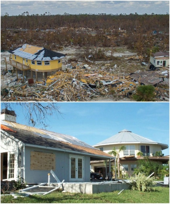 С такой силой свирепствующий тропический ураган унес несколько десятков жизней и 70 тыс. людей оставил без крова над головой. На всем острове только лишь аэродинамичные круглые дома оказались без повреждений и остались на своих местах. И это неудивительно, ведь компания, которая их строит, уже 50 лет занимается разработкой уникальных строений, которые за годы существования уже пережили ураганы «Катрина», «Ирма», «Харви», «Майкл», и последний «Дориан», достигший высшей 5 категории и множество других штормов и тайфунов.