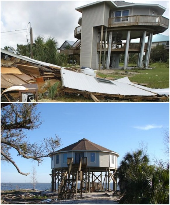 Круглые дома стали спасательным кругом во время урагана Дориан на Багамских островах и не только (дом производства Deltec). | Фото: pikabu.ru.