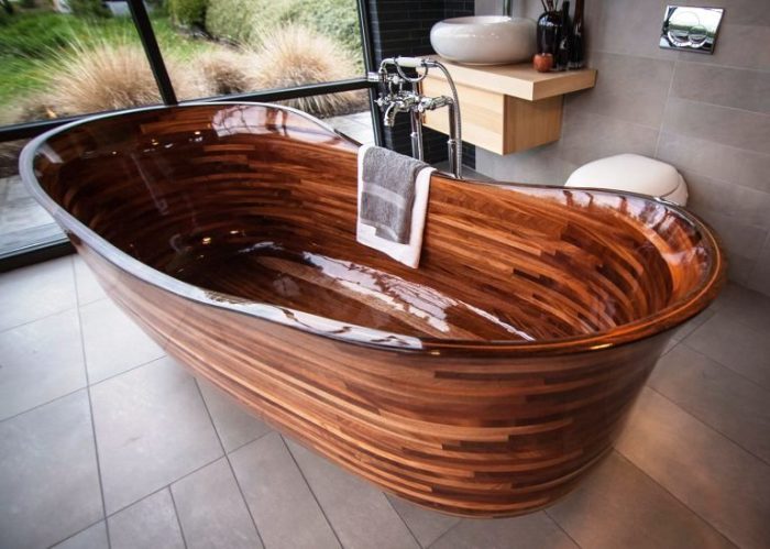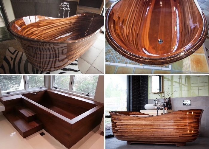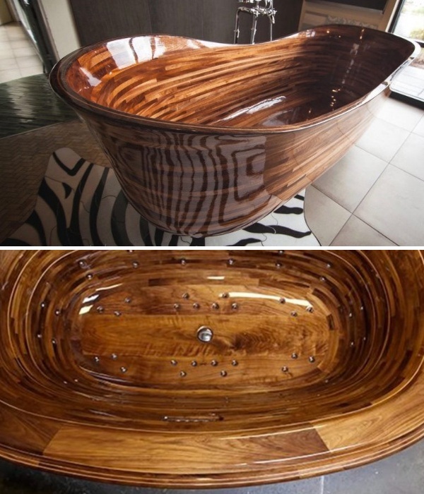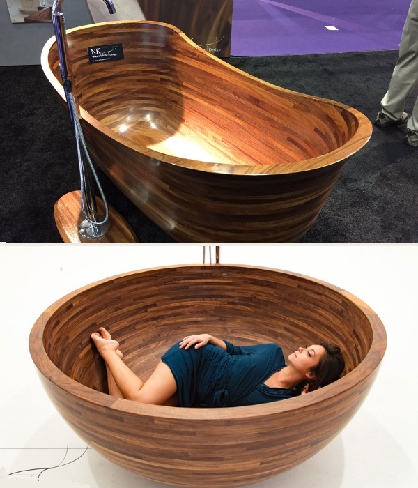 Если вы думаете, что ванны бывают только лишь из акрила, чугуна, стали или из дорогущего мрамора, то сильно ошибаетесь. Есть мастера, которые могут создавать настоящие шедевры из натурального дерева, и ванны в перечне уникальных произведений искусств тоже есть. Так, например, американский мастер по изготовлению лодок Нати Кацофф решил создать коллекцию деревянных ванн, которые, несомненно, украсят любую ванную комнату и доставят массу удовольствия во время принятия водных процедур.