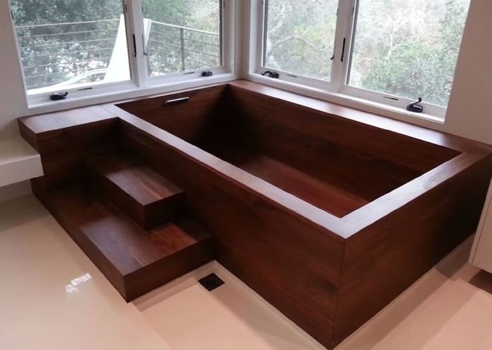 Деревянная ванна из ценных пород деревьев может быть любой формы. | Фото: mypositiveoutlooks.com.